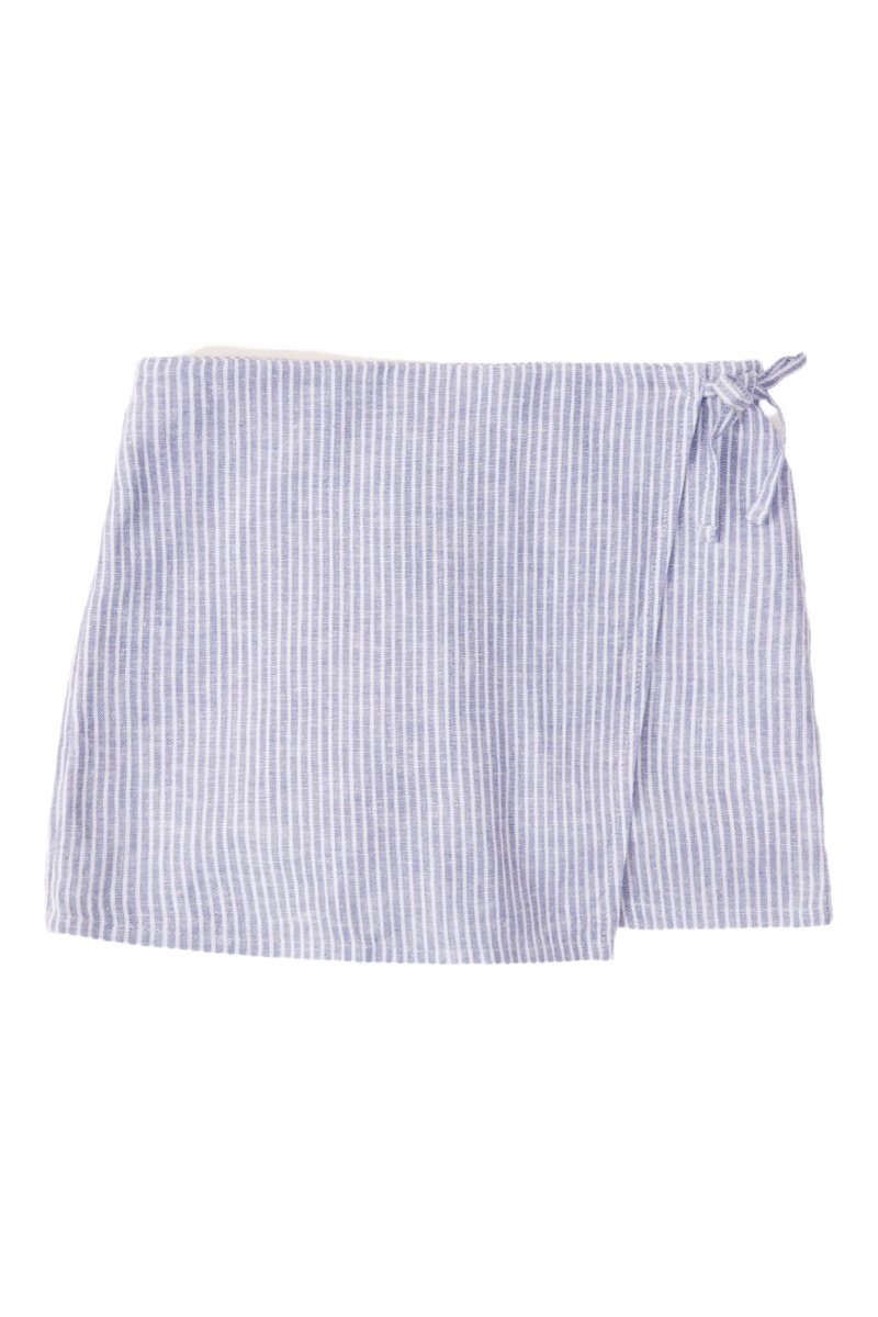 Falda de lino - Azul grisáceo y blanco