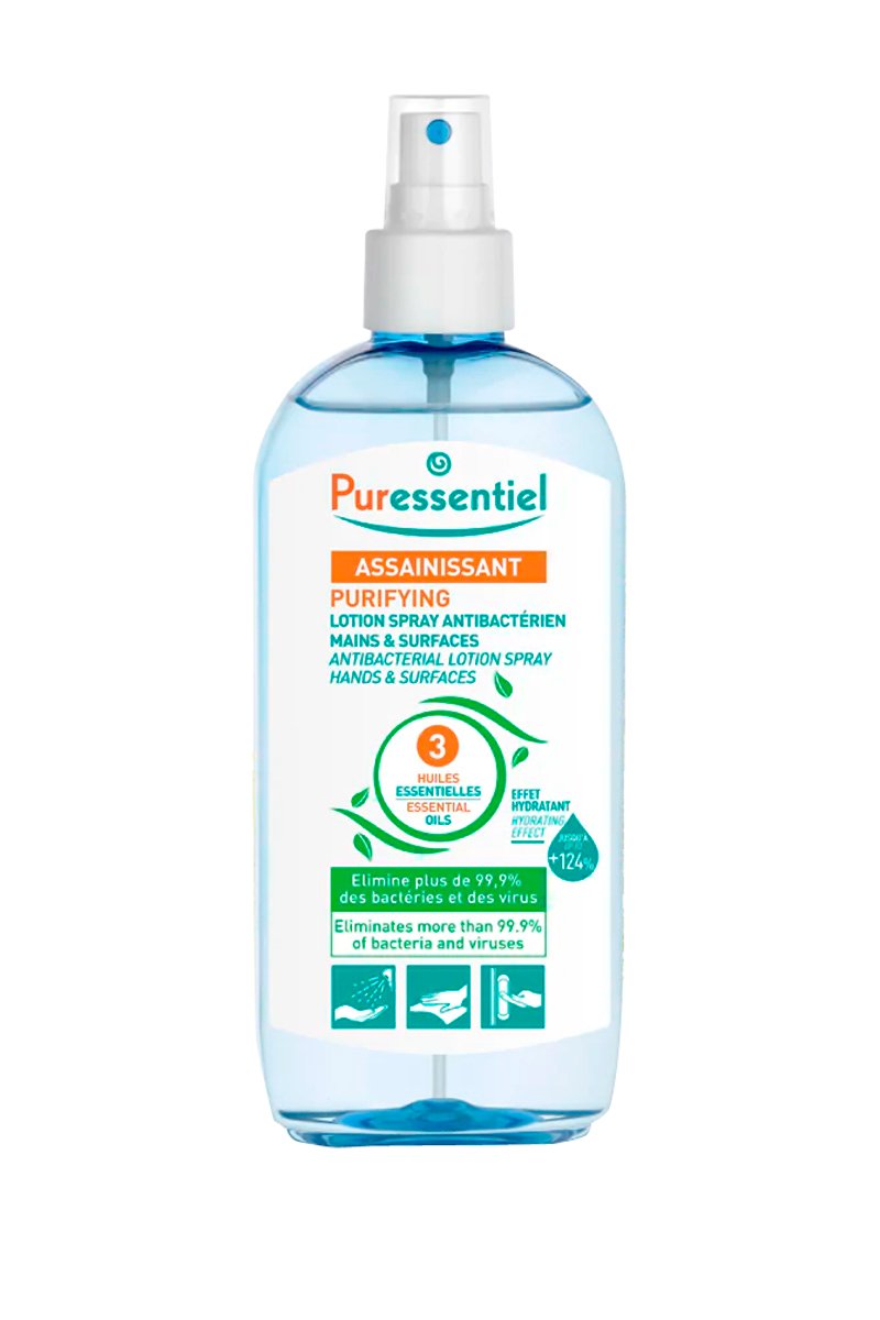 Esta loción hidroalcohólica con 3 aceites esenciales desinfecta las manos y las superficies sin necesidad de agua, sin jabón y sin aclarar.