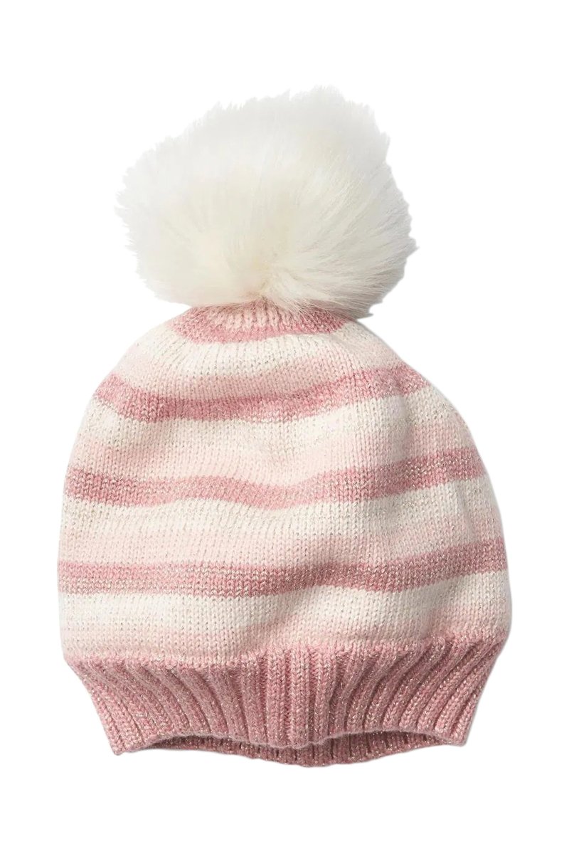 Gorro con borla - Rosa empolvado y blanco