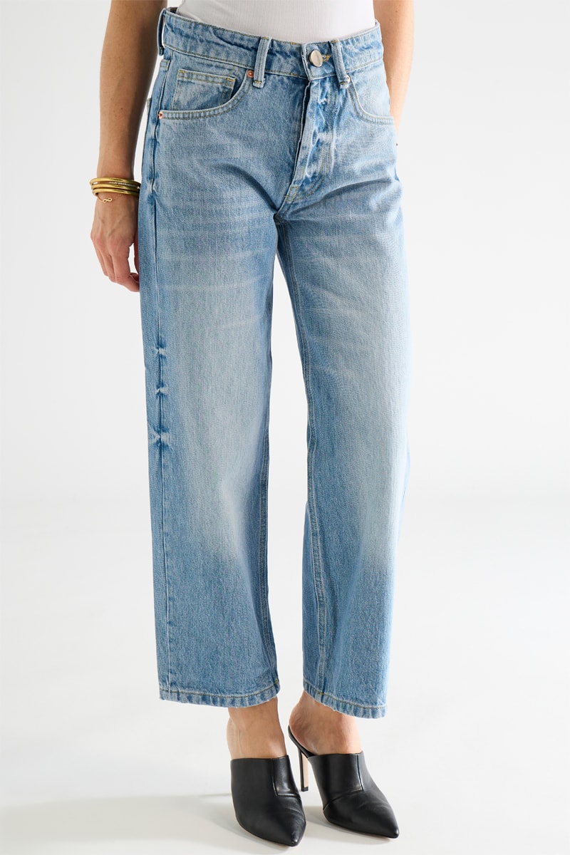 Vaquero de algodón orgánico de tiro alto - Azul claro