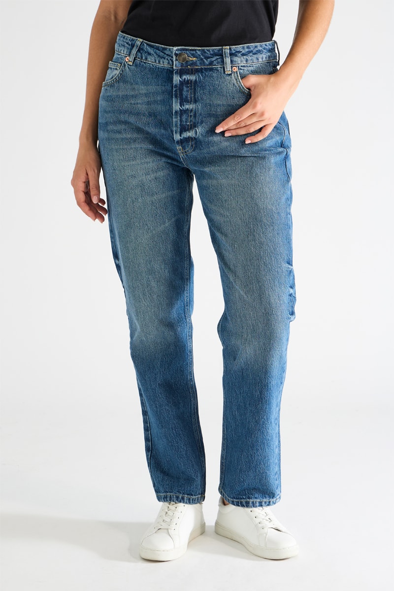 Vaquero de algodón orgánico de tiro alto - Azul petróleo