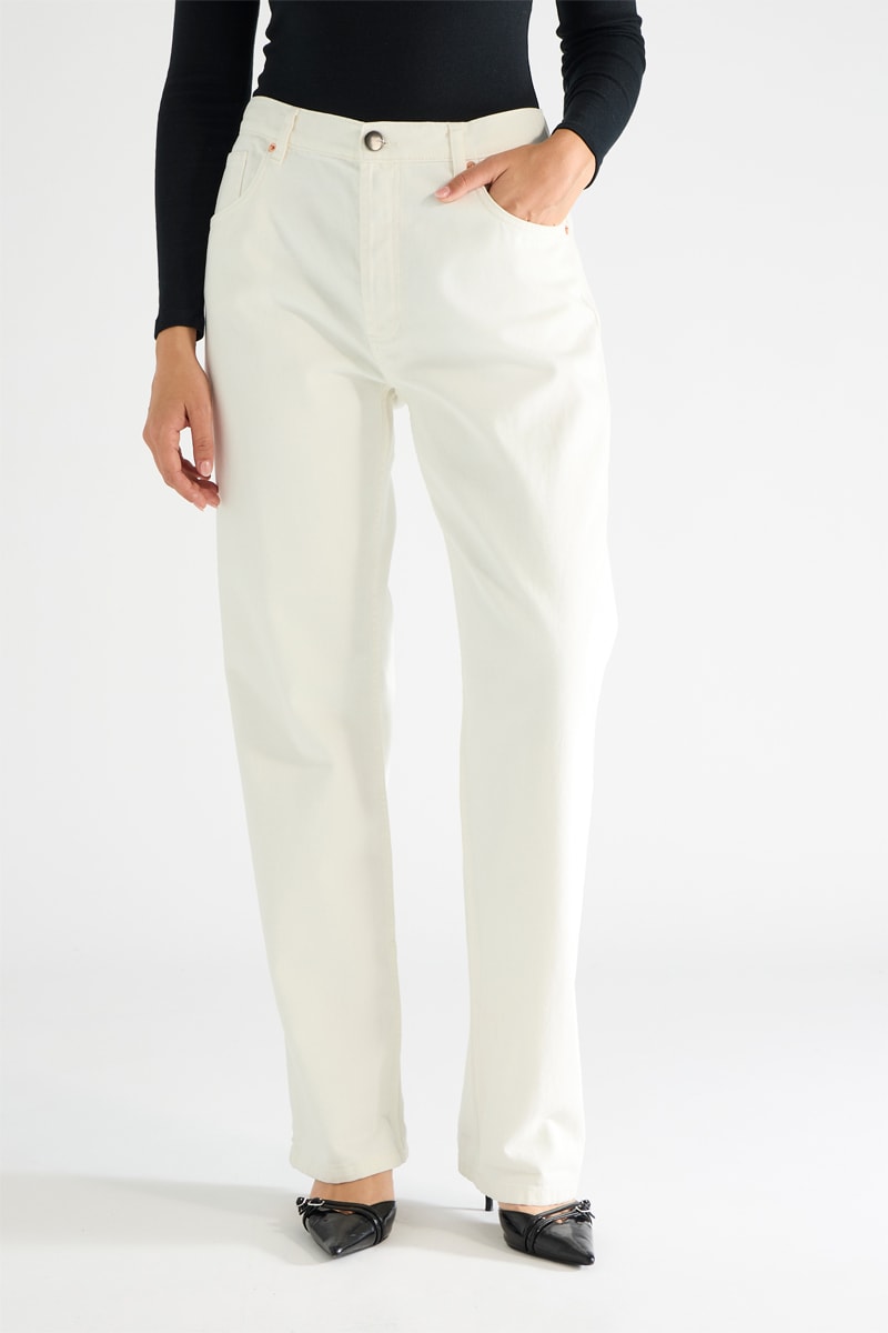 Vaquero de algodón orgánico de tiro alto - Blanco