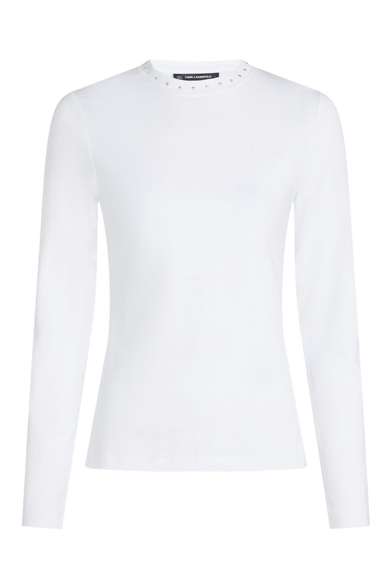 Cuello redondo con detalles de metal.