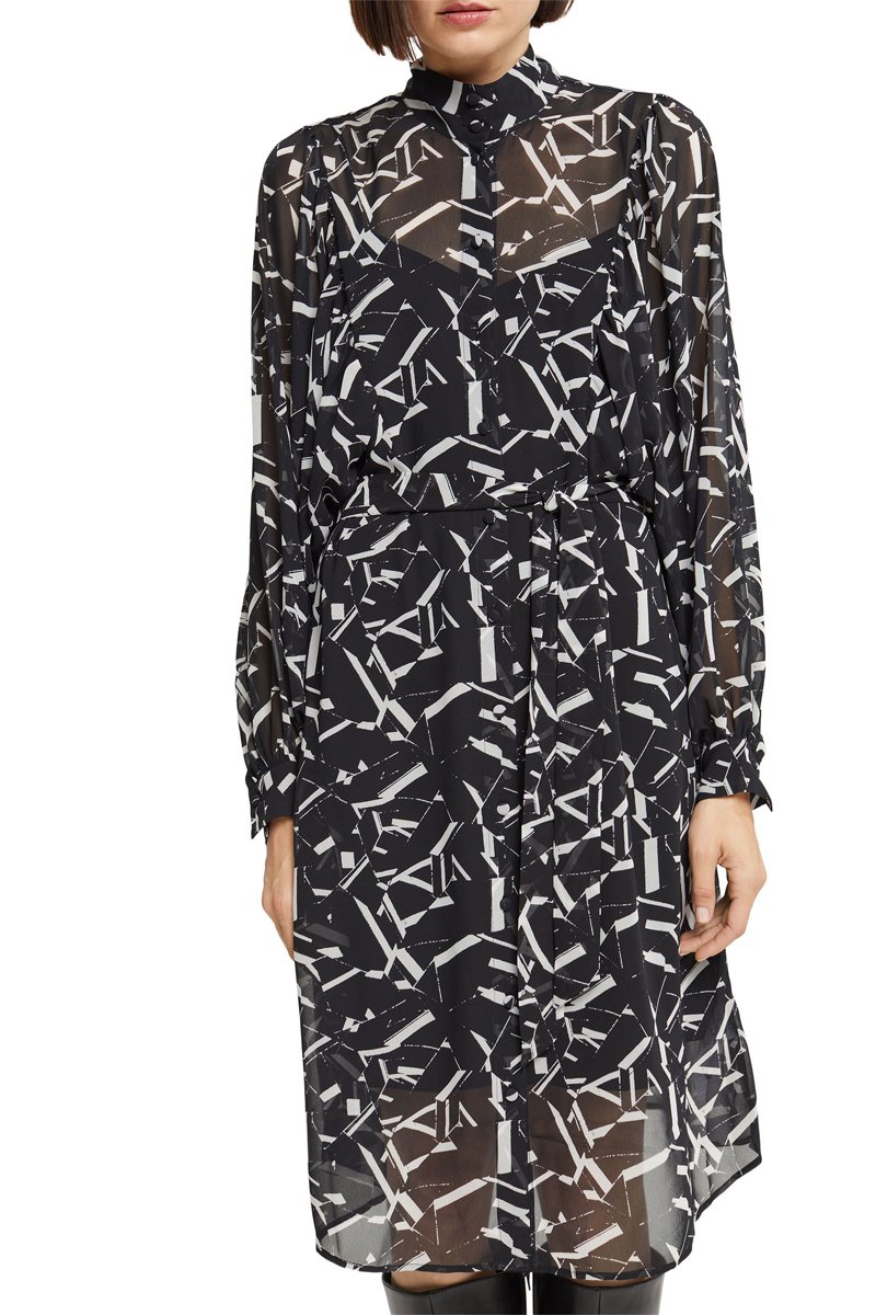 Vestido de manga larga con botones y frunces.