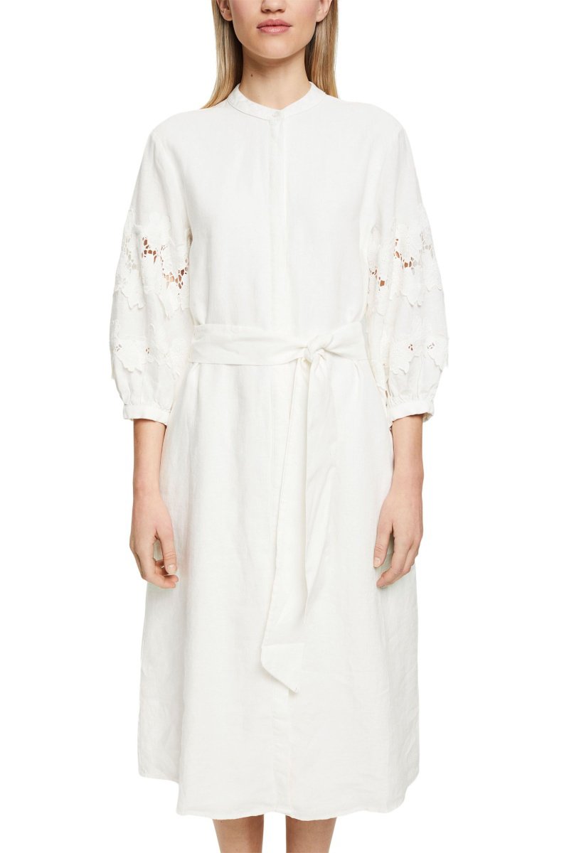 Vestido midi de lino - Blanco