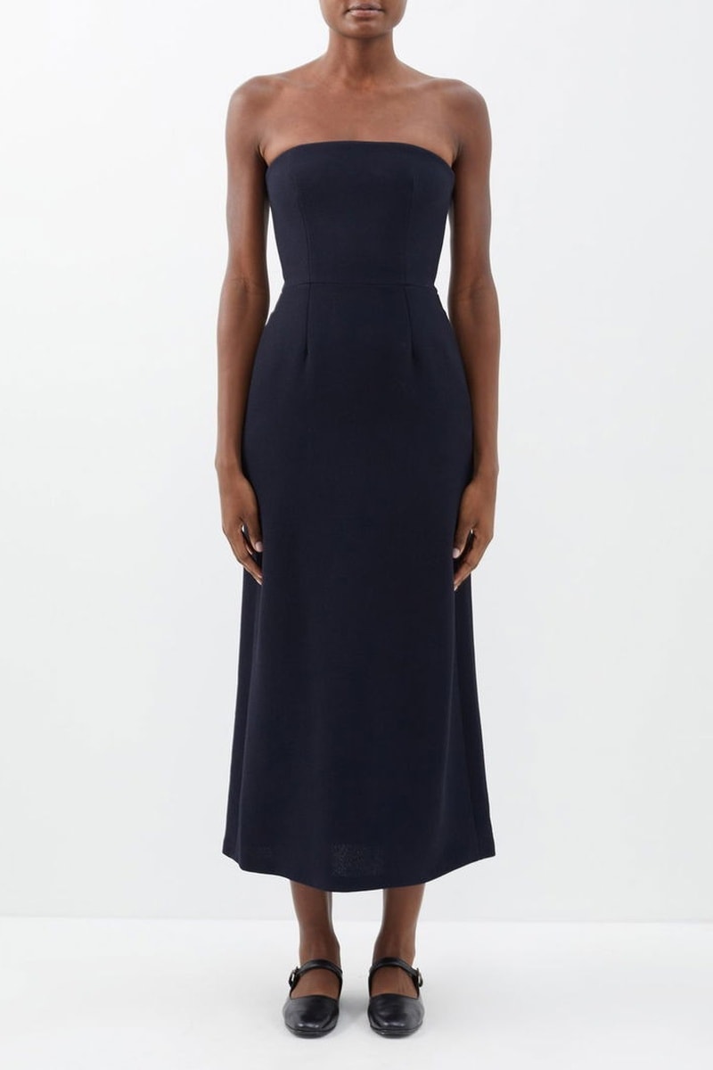 Vestido bustier de lana - Azul marino