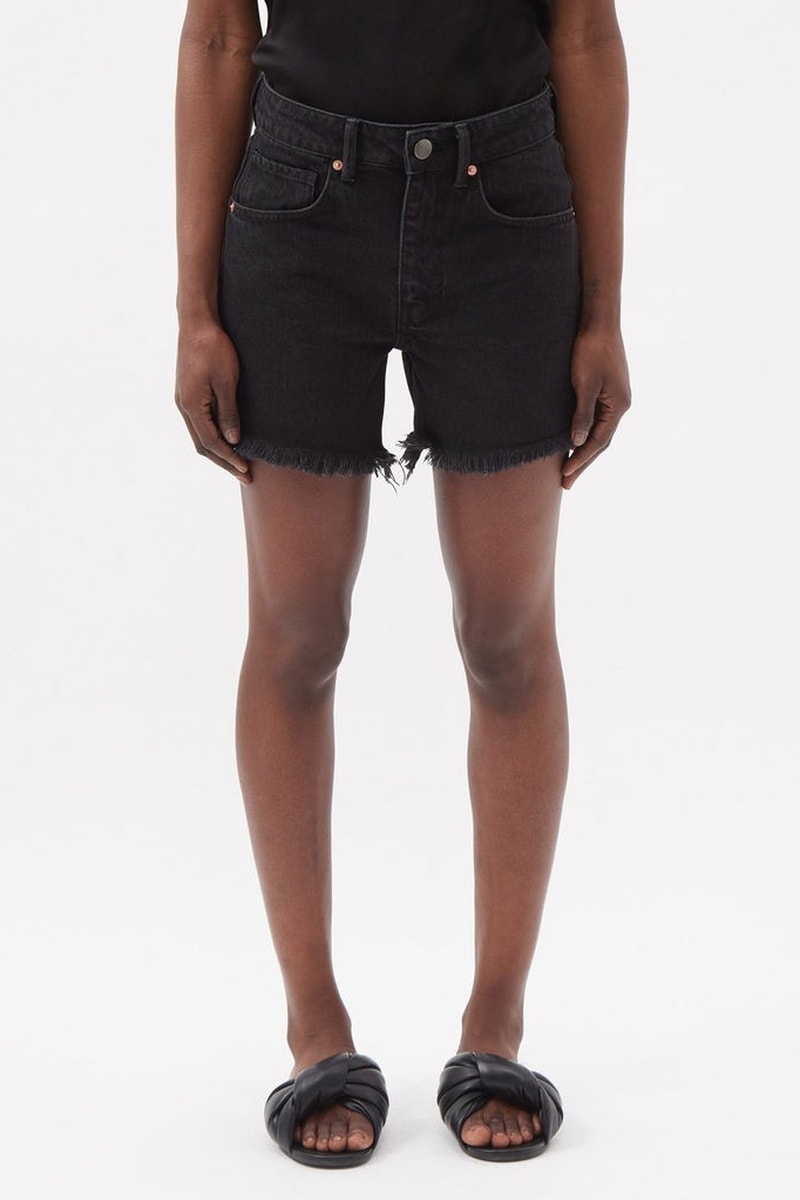 Short vaquero de algodón orgánico de tiro alto - Negro