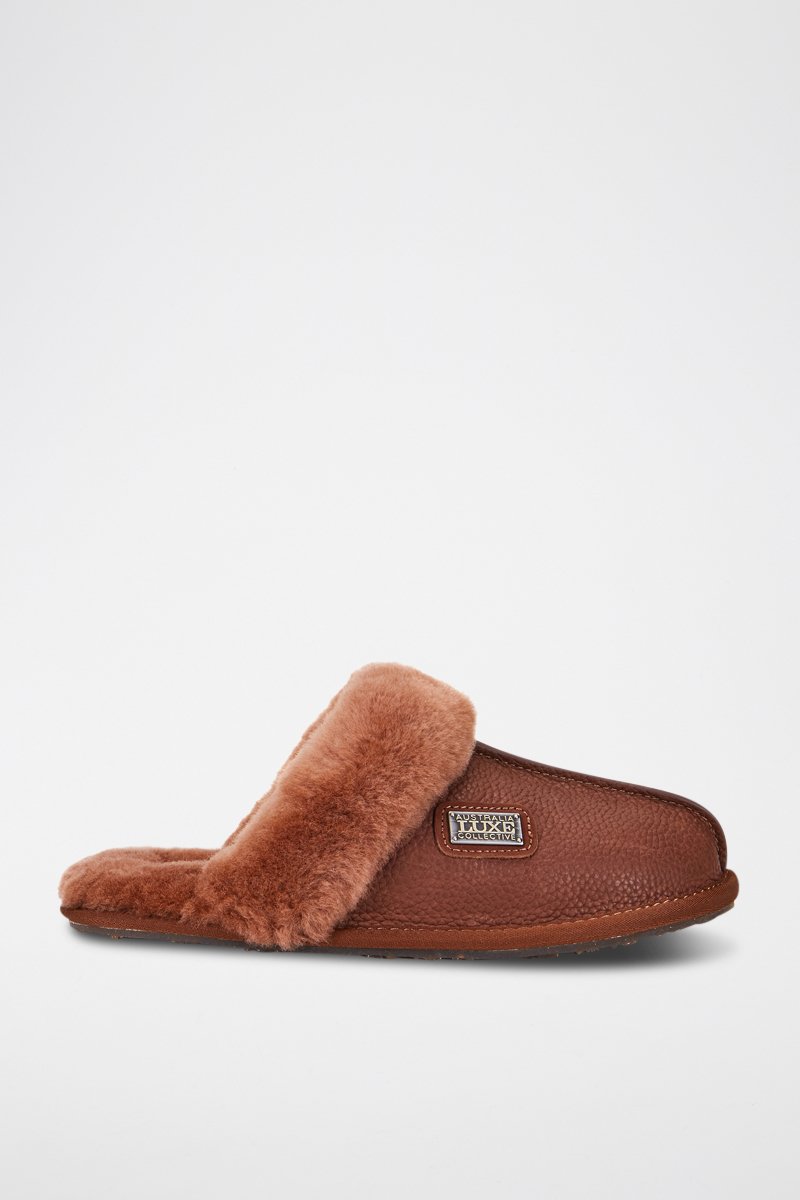 Sandalias de piel ovina forradas - Marrón