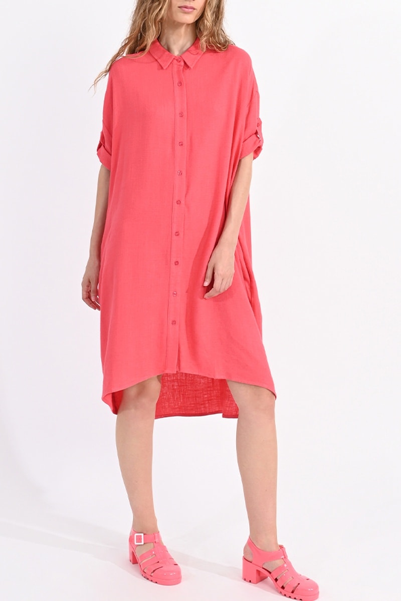 Vestido camisero de lino - Coral - Lili Sidonio