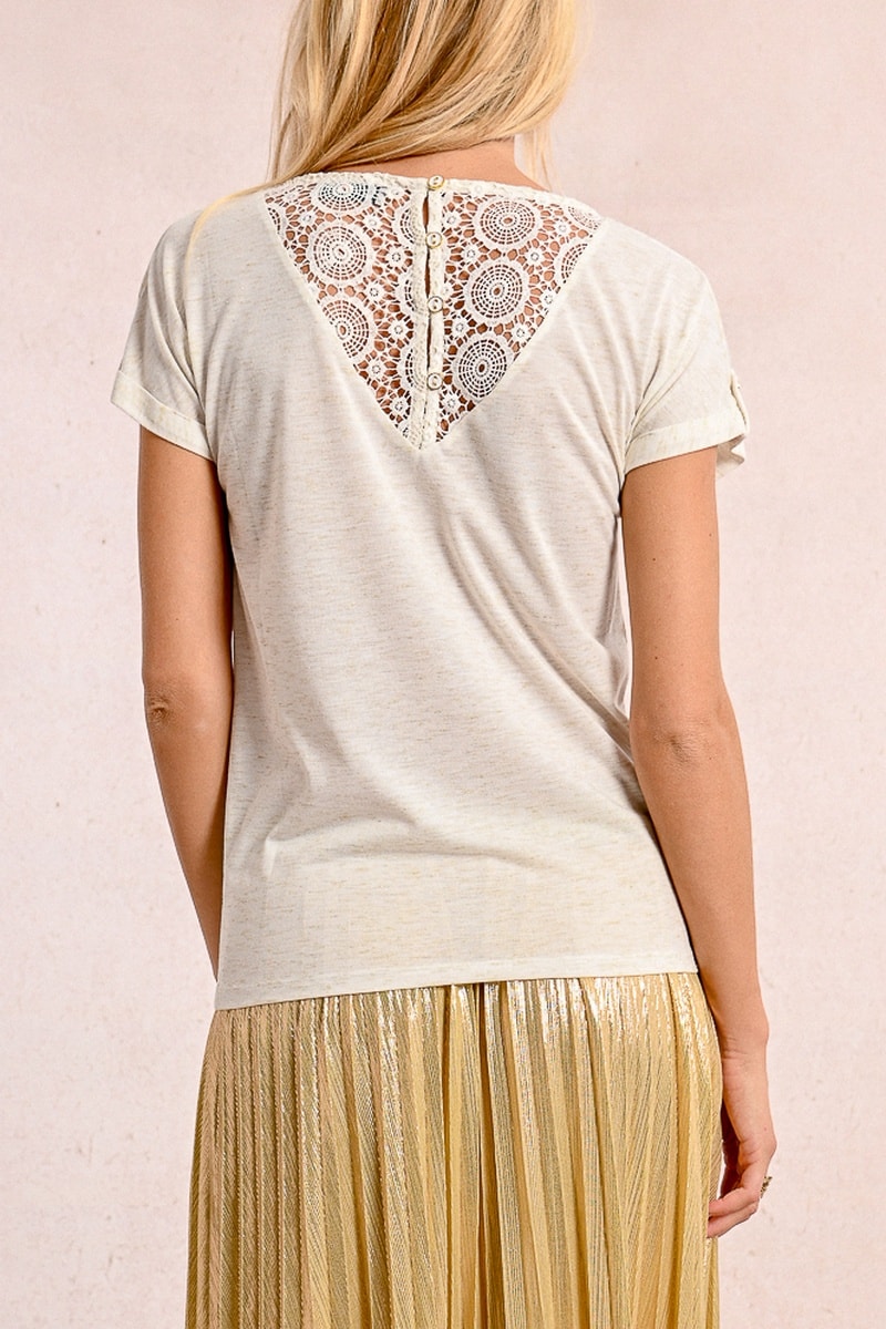 Top de manga corta con vuelta con tira de botón.