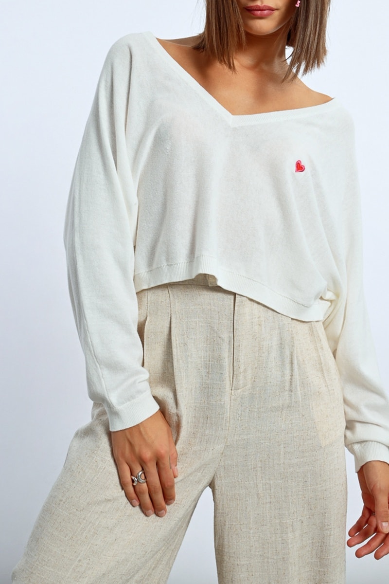 Estampado de corazón bordado delante.