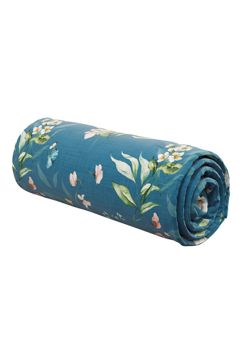 Sábana bajera de satén de algodón 80 hilos/cm² Belle de Nuit - Azul