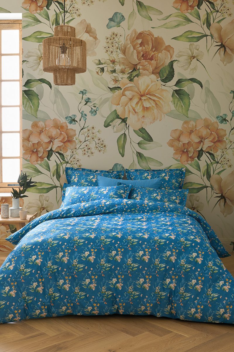 Juego de nórdico de satén algodón 79 hilos/cm² Belle de Nuit - Azul