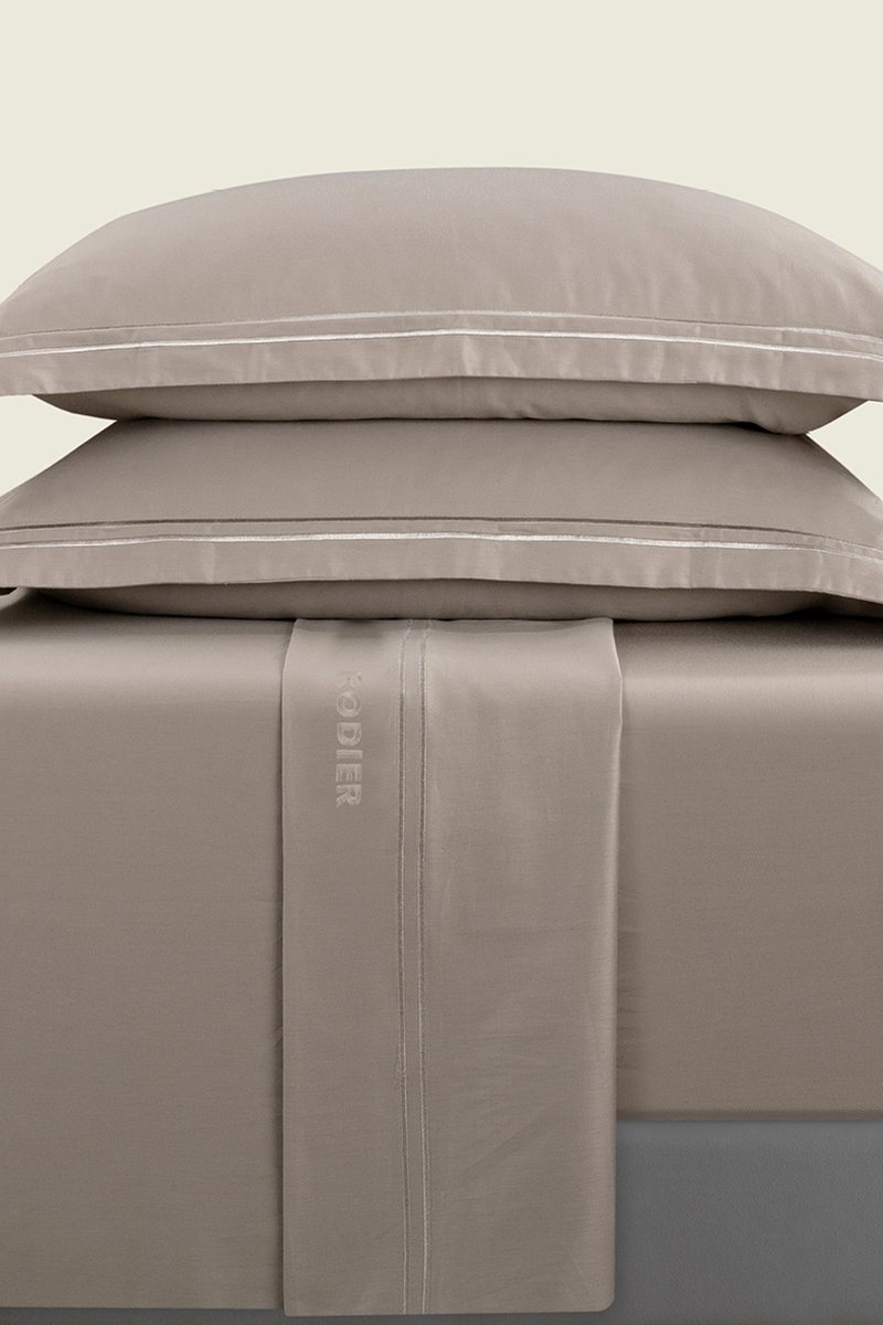 Juego de sábanas de satén de algodón 80 hilos/cm² Nice - Topo