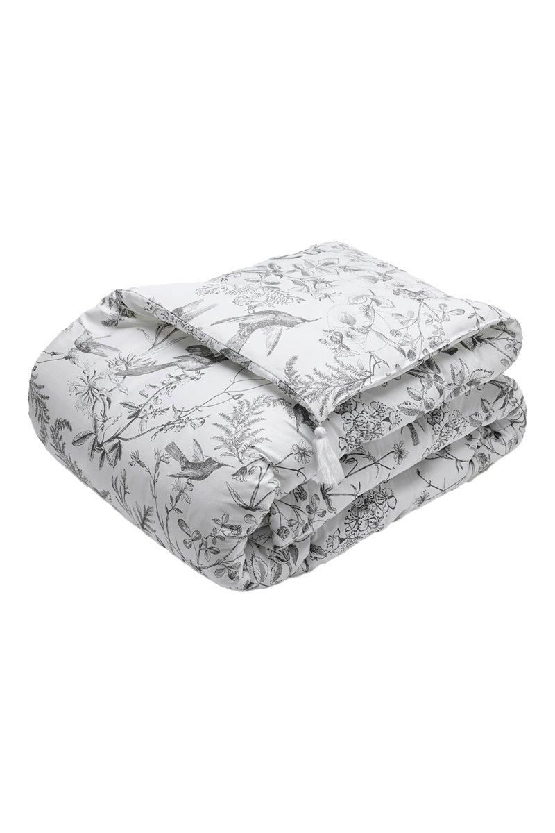Edredón de satén de algodón 80 hilos/cm² Colibri botanique - Negro y gris