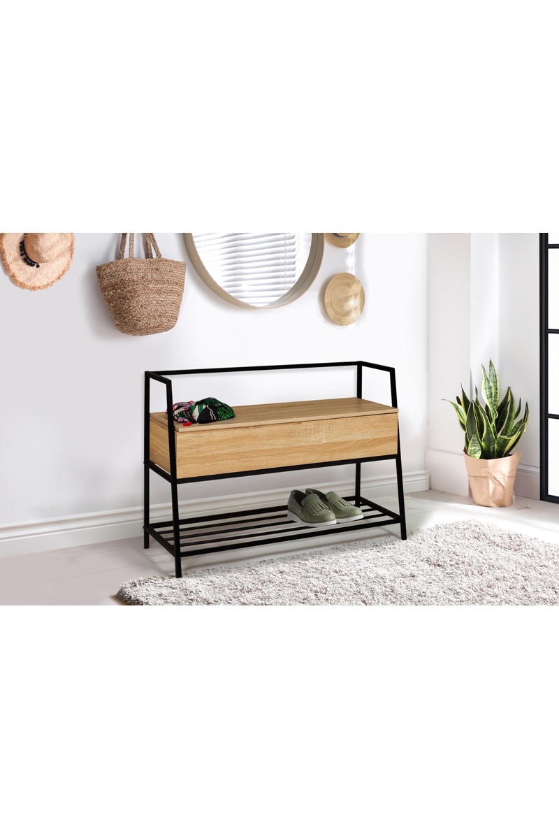 Banco con arcón 2 en 1 Timéo - Imitación madera y negro