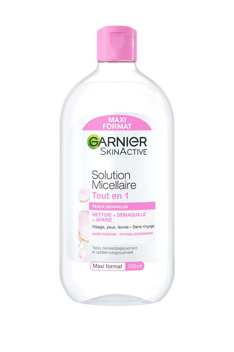 Consejos de uso: limpiar el rostro, los ojos y los labios con algodones humedecidos con el producto, sin frotar ni aclarar.