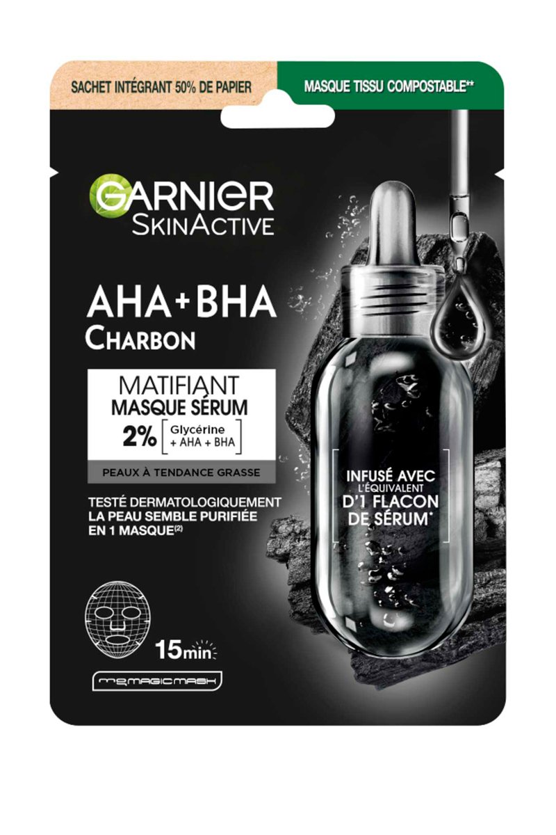 Mascarilla de tela con sérum matificante de carbón vegetal.