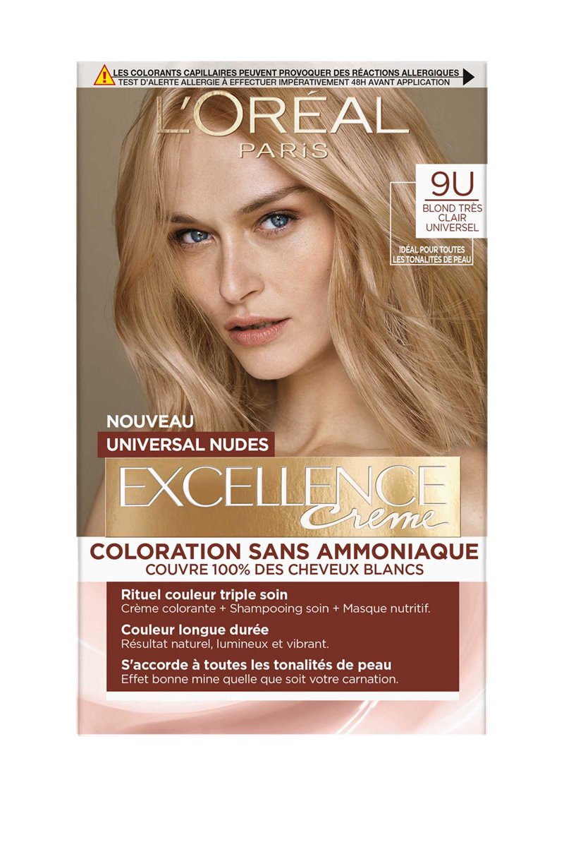 Coloración permanente Excellence Crème Universal Nudes - 9U Rubio muy claro - Cabello normal