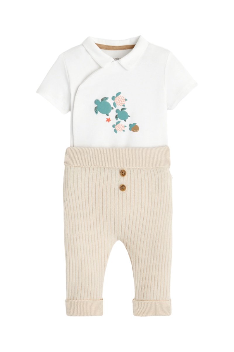 Body y pantalón - Blanco y beige