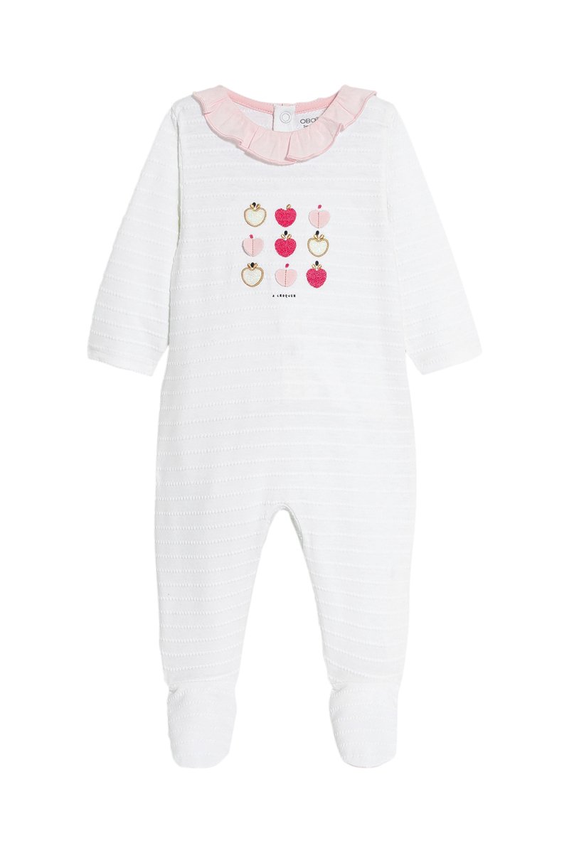Texto, detalles en contraste y estampado de fantasía bordado delante.