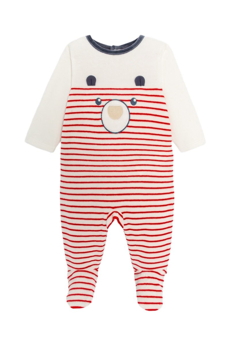 Estampado de rayas, detalles con estampado de fantasía bordado y forma de orejas delante.