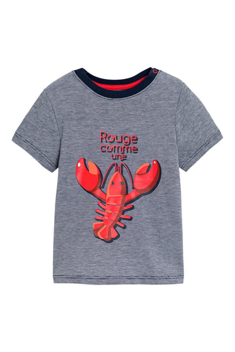 Texto y estampado de cangrejo delante.