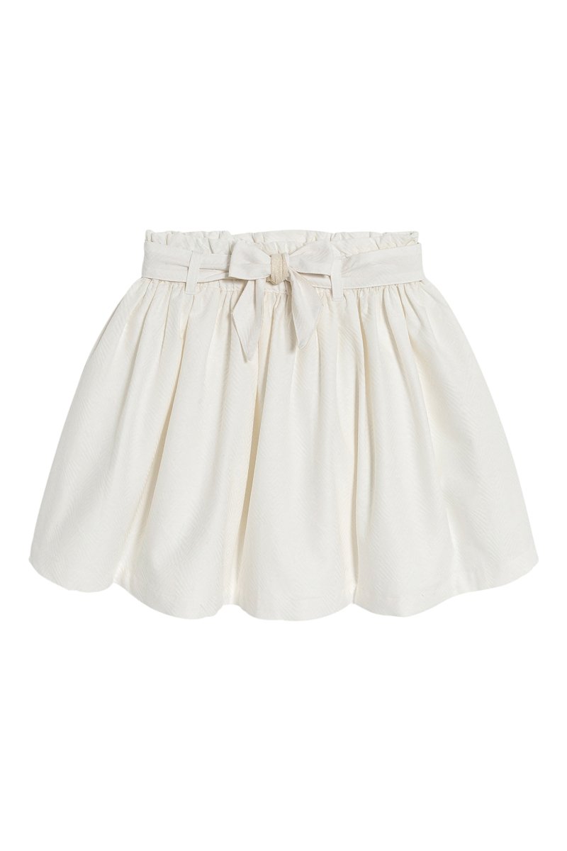 Cintura elástica avolantada con tiras anudables y trabillas.
