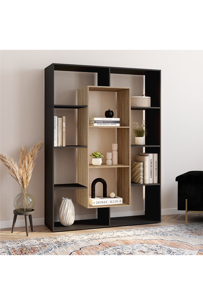 Estantería Paulette 11 compartimentos madera y negro 143 cm