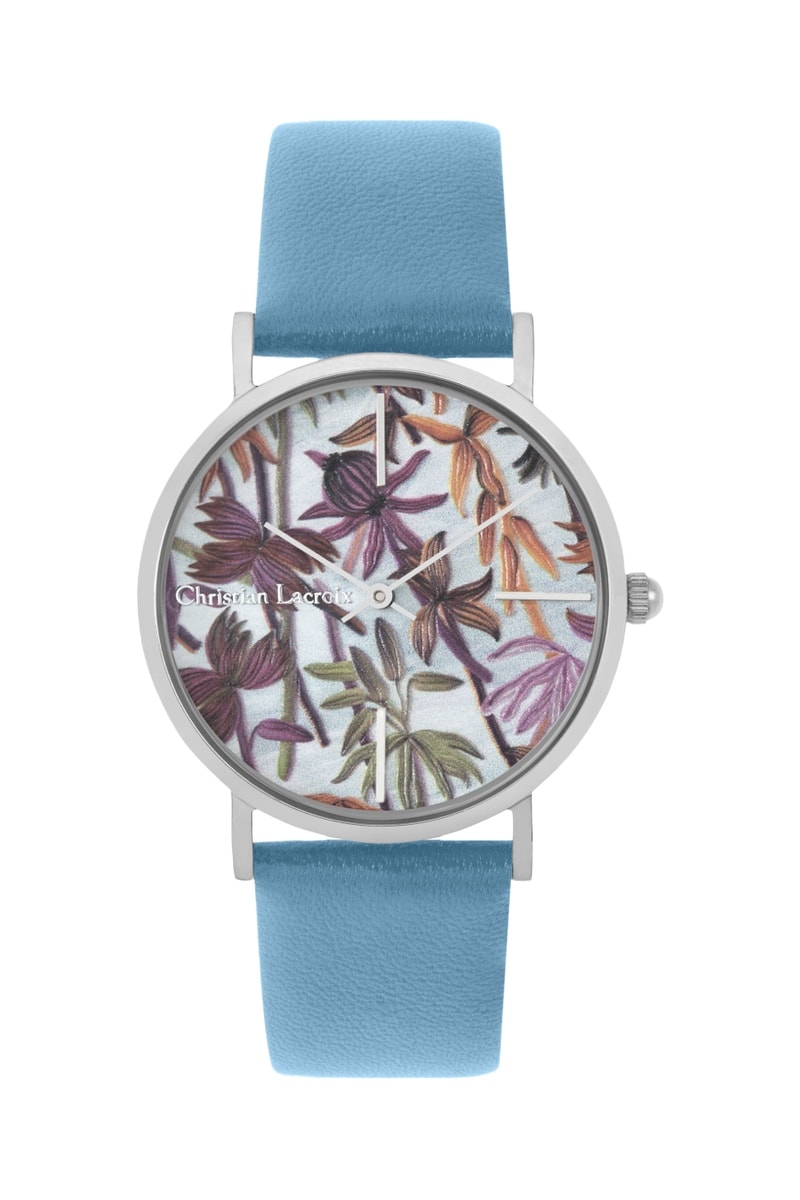 Reloj de cuarzo de piel Guatiza - Celeste y plateado