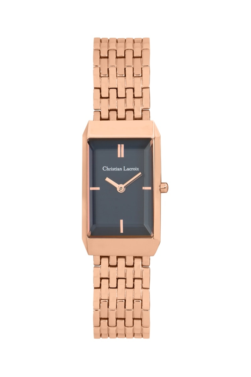 Reloj de cuarzo de acero Signature - Rosa dorado y azul marino