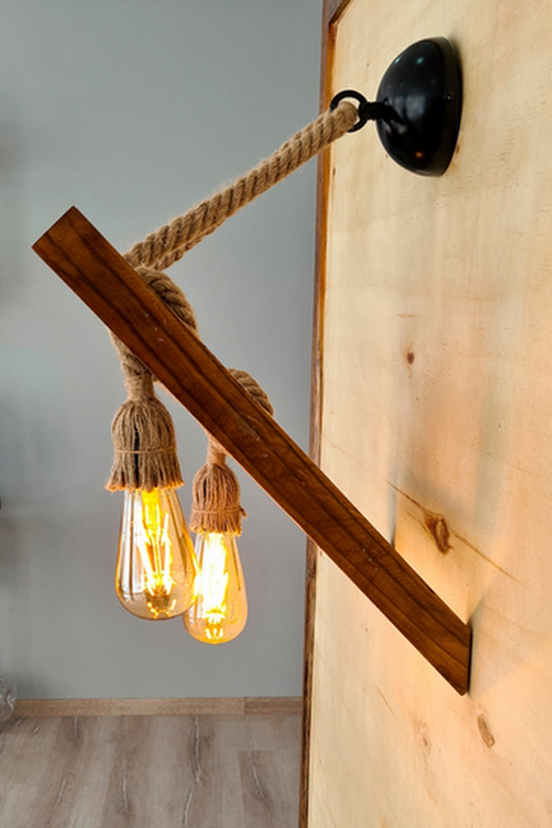 Aplique mural de pino Merdiven Halat - Natural - 60 W