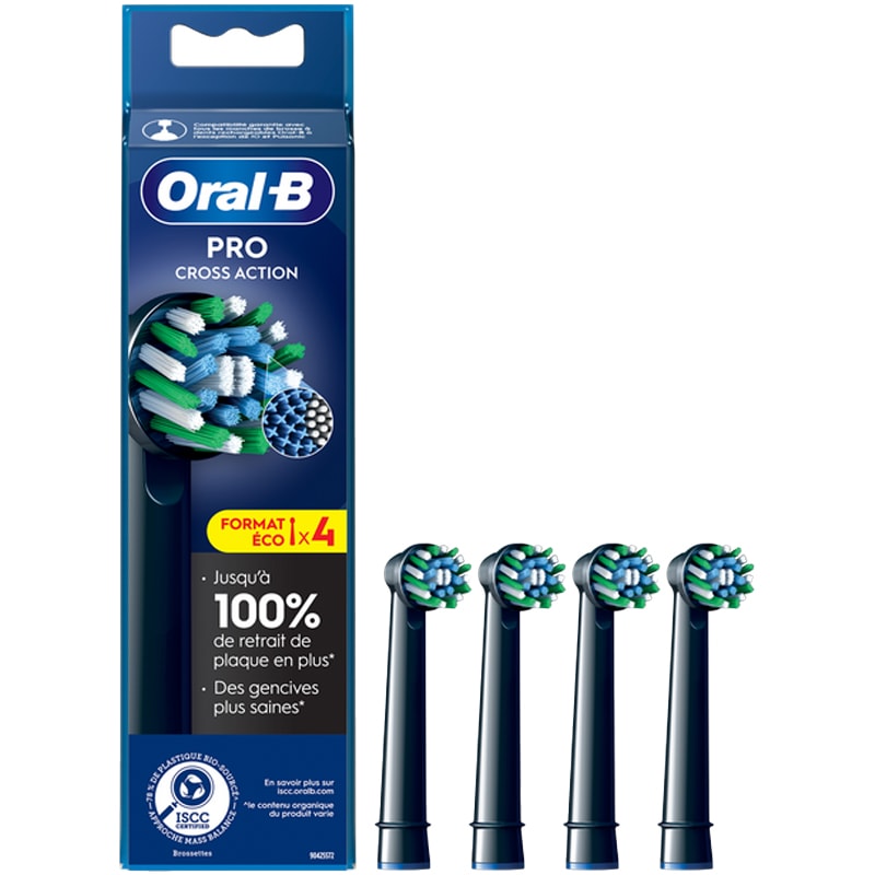 Oral-B Pro Cross Action posee más de 2200 filamentos oblicuos para eliminar hasta el 100 % de la placa bacteriana para unos dientes más limpios y unas encías más sanas que con un cepillo de dientes manual.