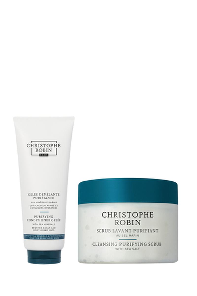 Champú scrub purificante con sal marina y gel desenredante purificante con minerales marinos - 40 y 200 ml
