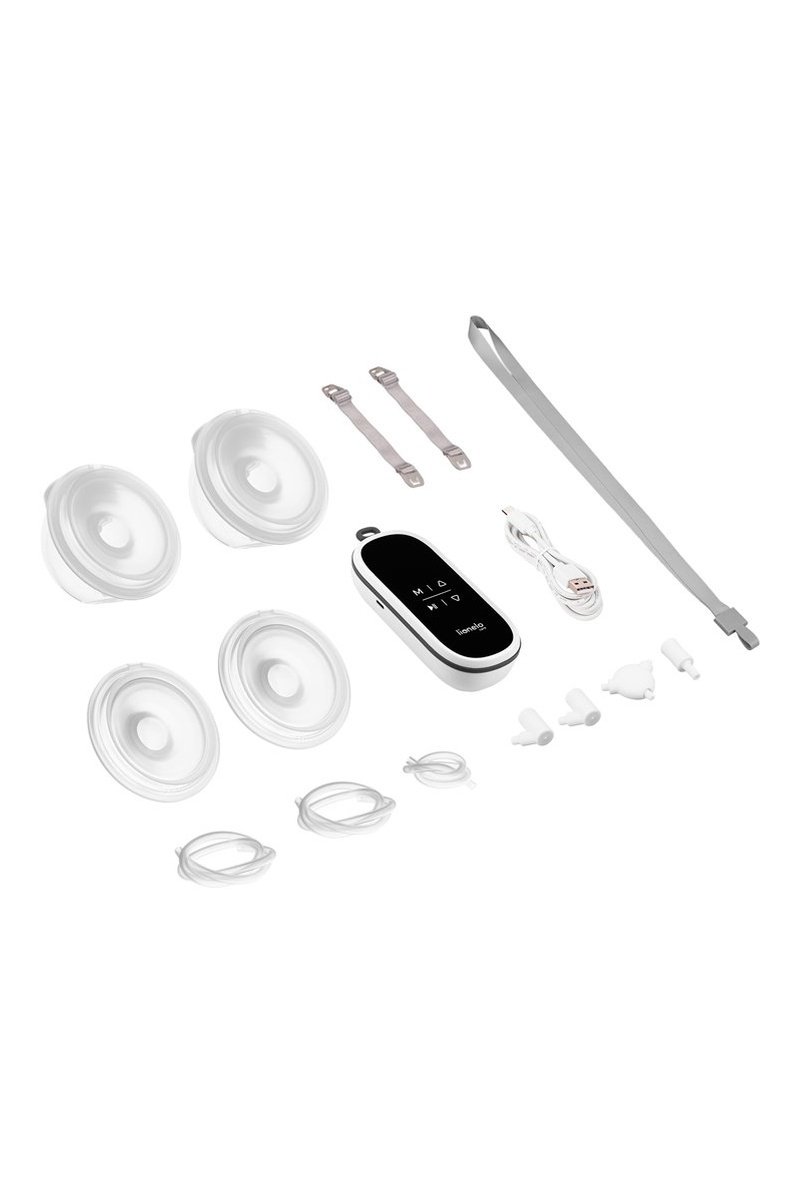 Embudos de silicona, 2 tazas de lactancia de 150 ml, cable USB de 1,5 m, maletín para sacaleches y accesorios, 2 correas y tira para colgar el sacaleches incluidos.