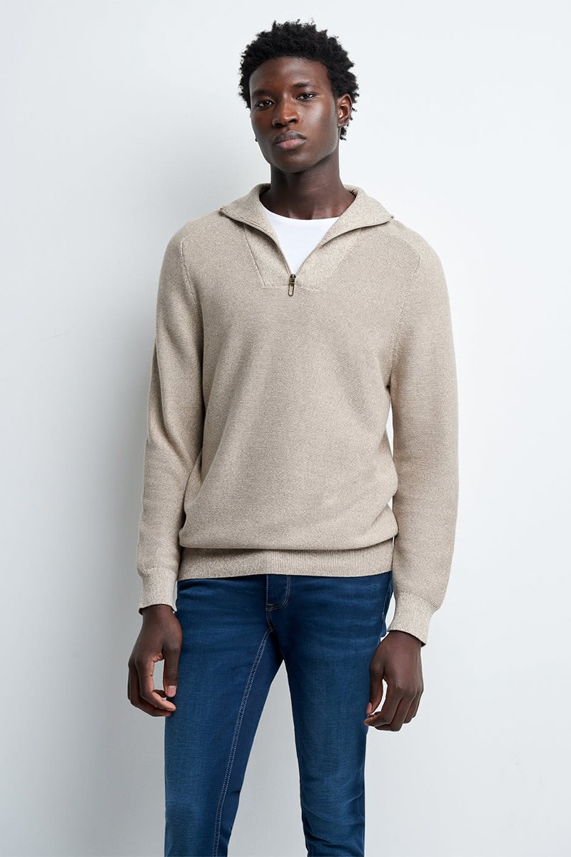 Cuello alto con cremallera.