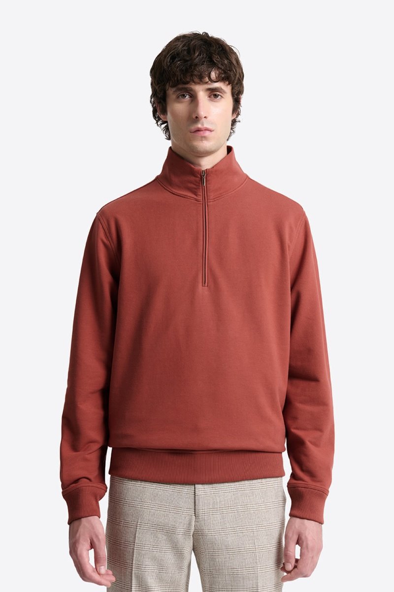 Cuello alto con cremallera.