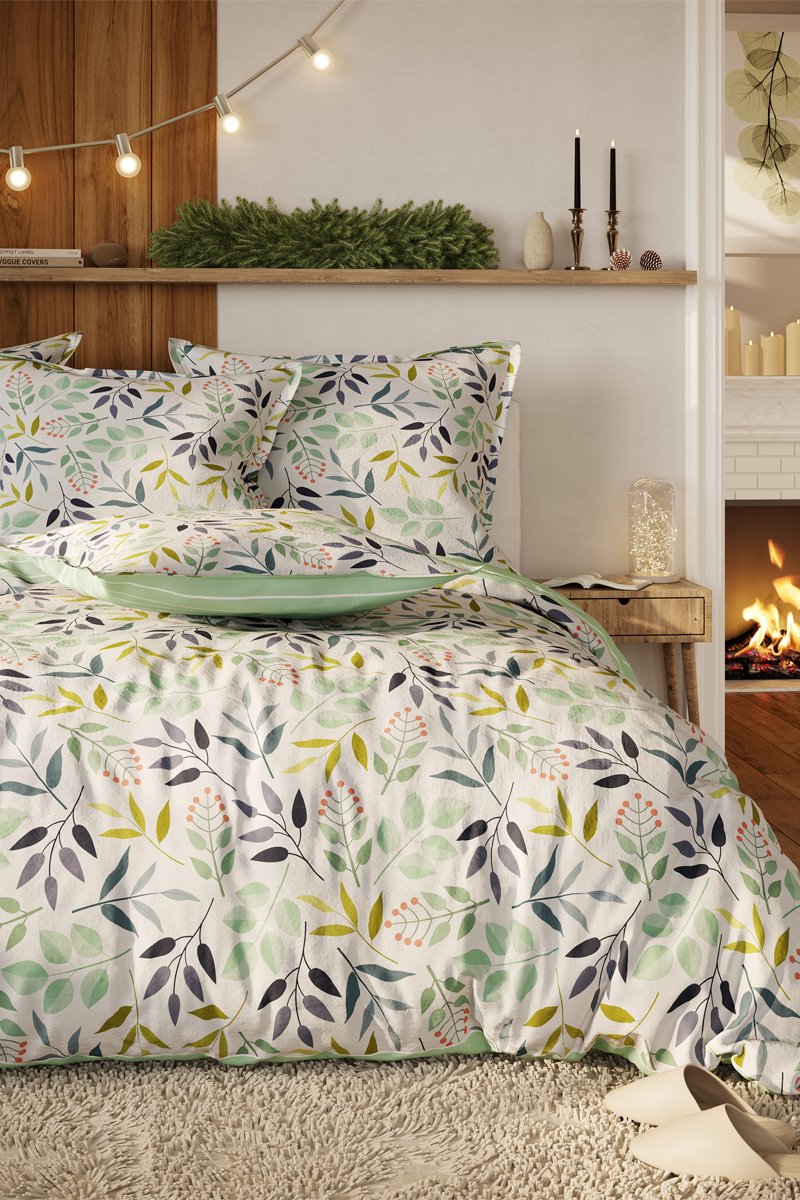 Juego de nórdico de franela de algodón Gloria - Verde y azul