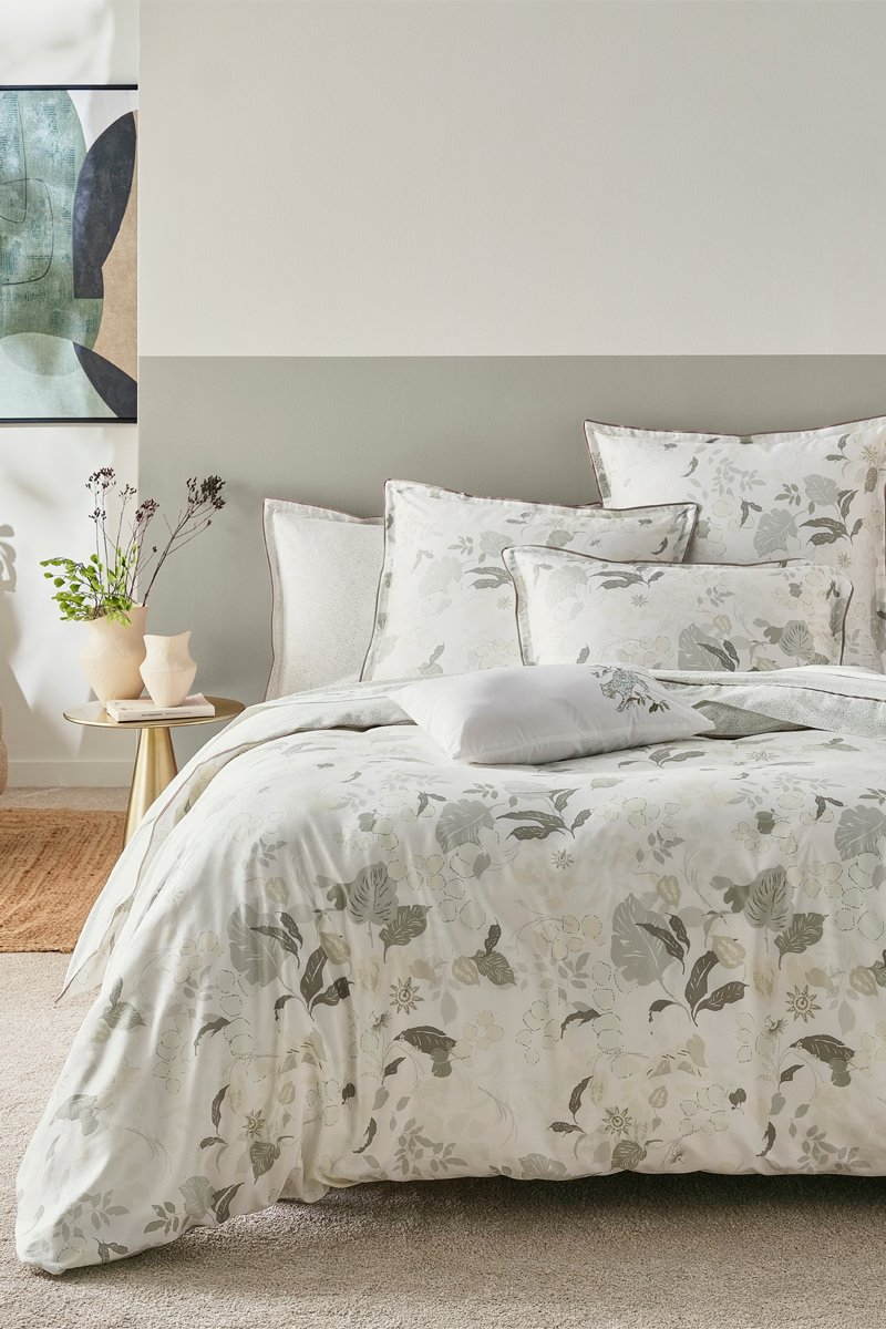 Juego de nórdico de satén de algodón 120 hilos/cm² Rae - Blanco y verde