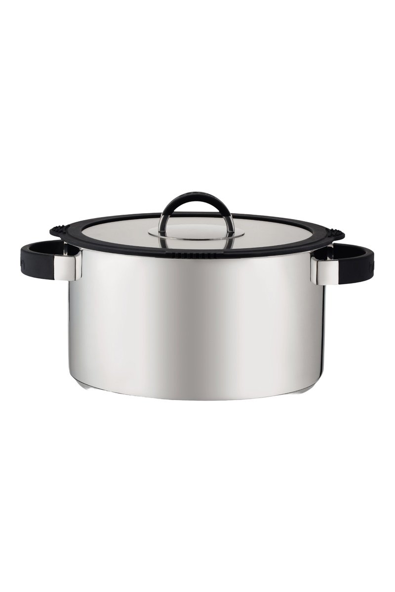 Olla de acero inoxidable con tapa.