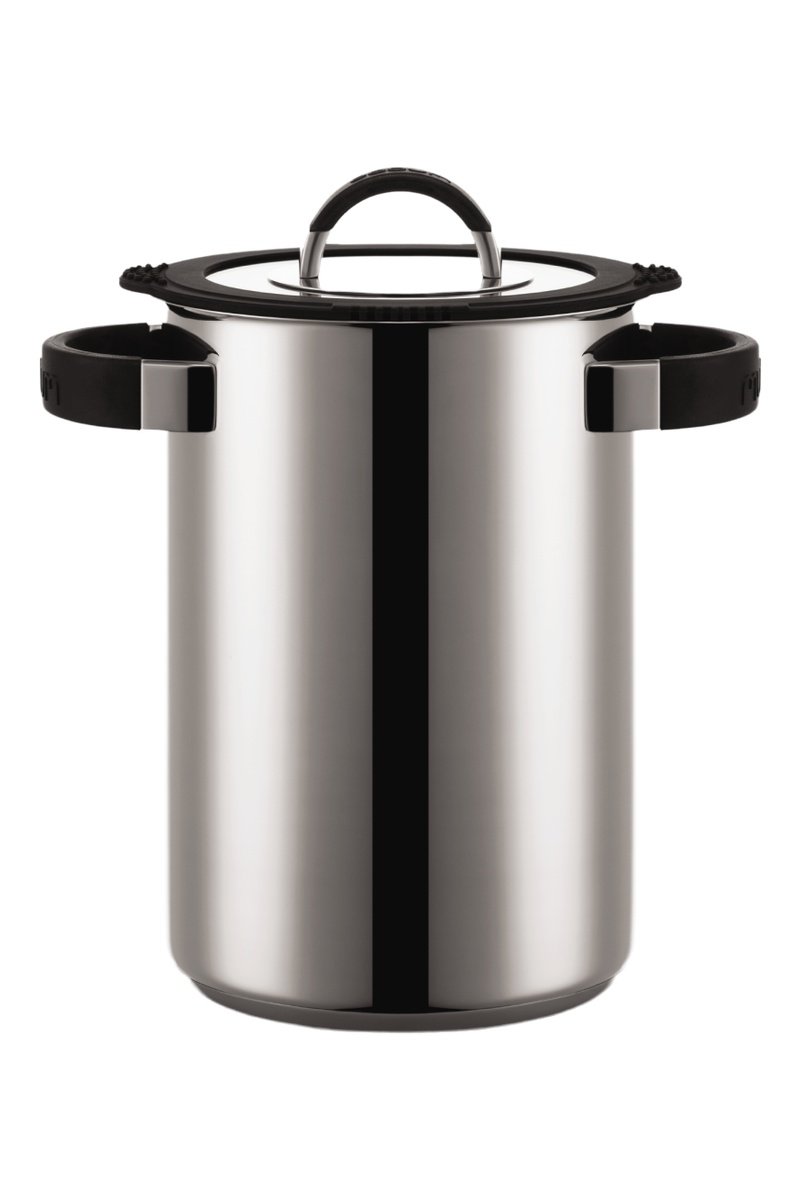 Olla grande de acero inoxidable con tapa.
