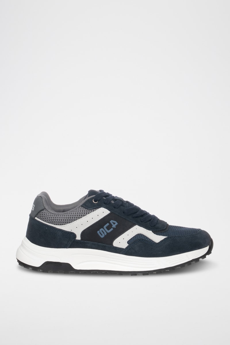 Zapatillas de piel - Azul marino y gris