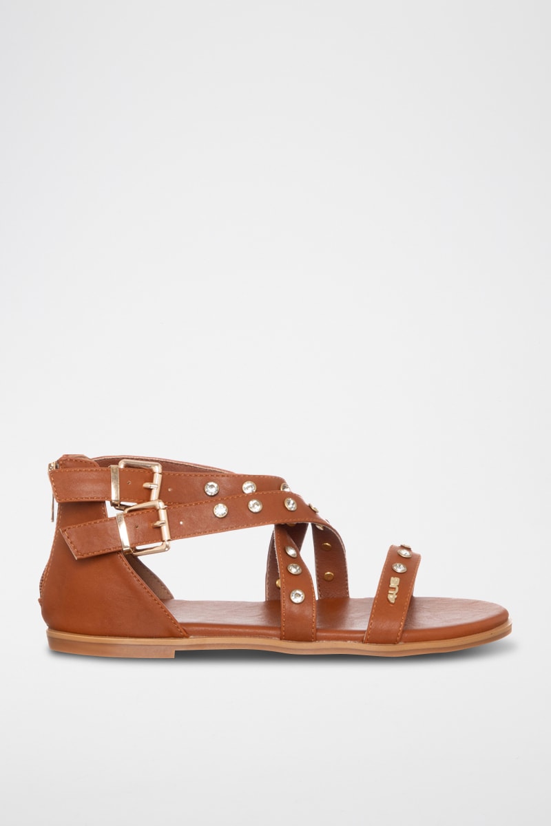 Cierre de tiras con hebilla en el lateral y cremallera detrás.