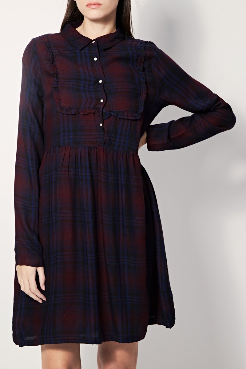 Vestido evasé Regua - Azul rey y burdeos