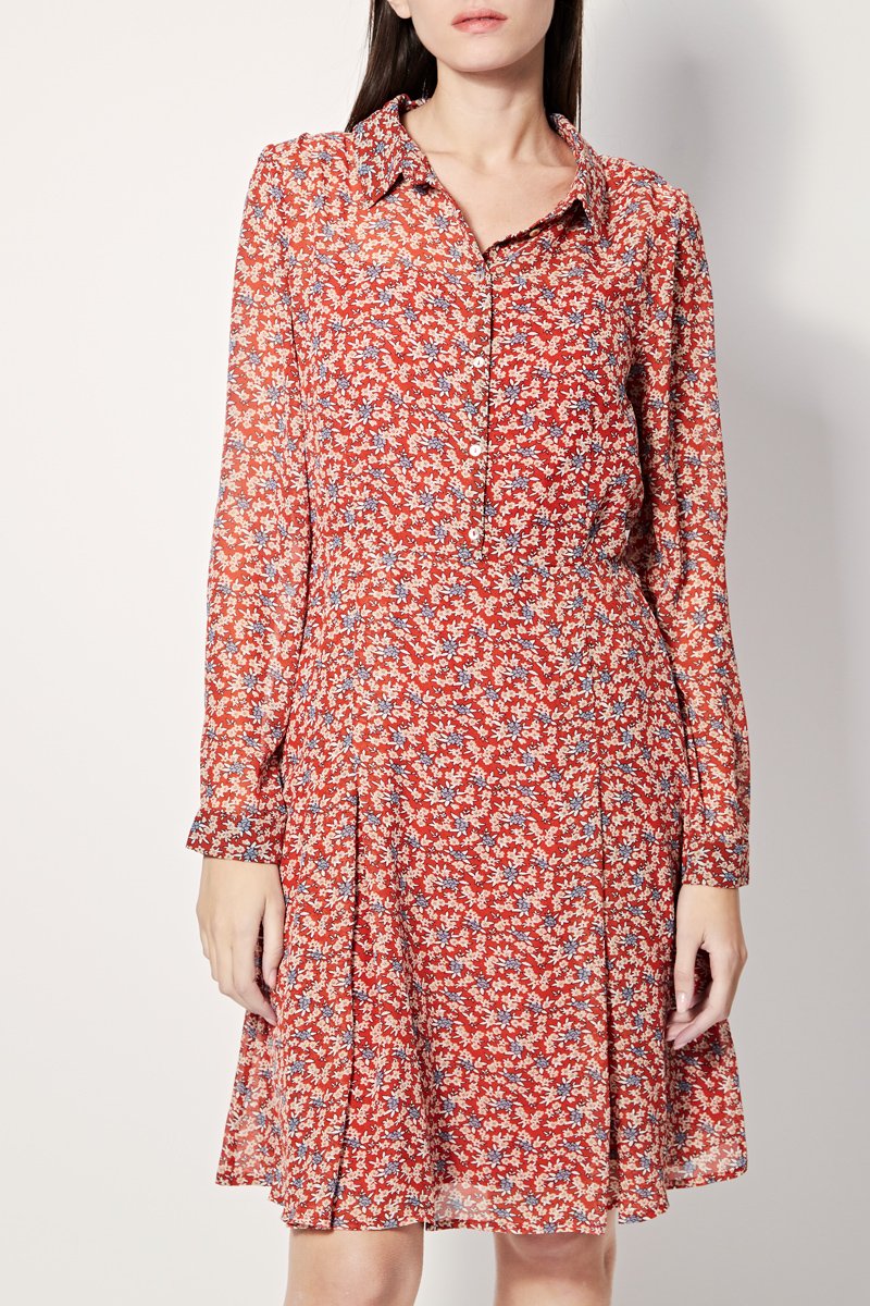 Vestido evasé Regale - Rojo y beige