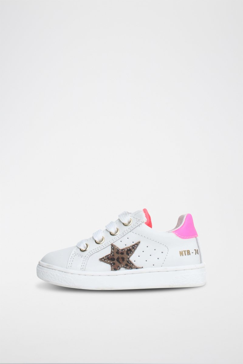 Zapatillas de piel bovina Pinn - Blanco y rosa