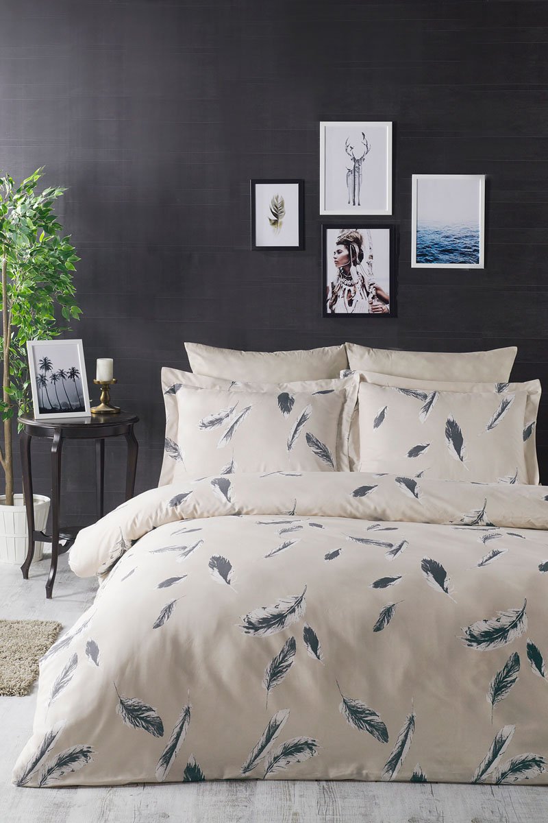 Juego de cama de algodón 57 hilos/cm² Feather - Beige
