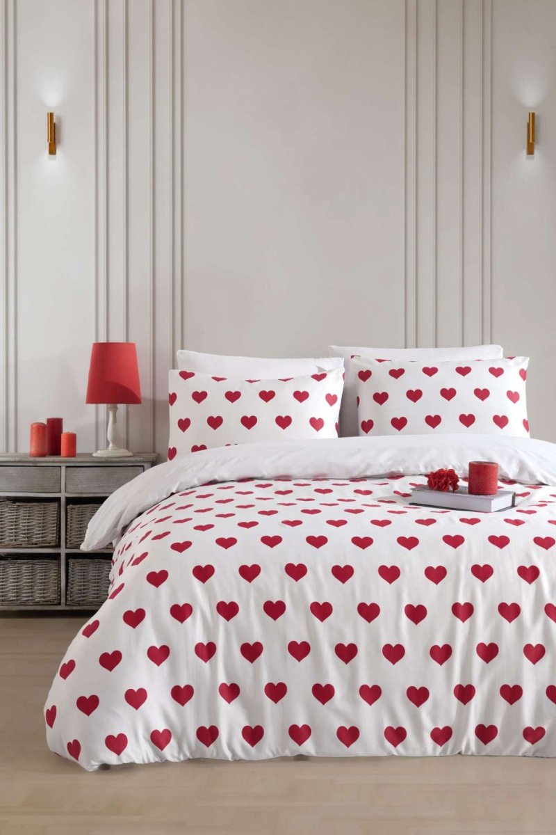 Juego de nórdico de algodón 120 hilos/cm² Loop - Blanco y rojo