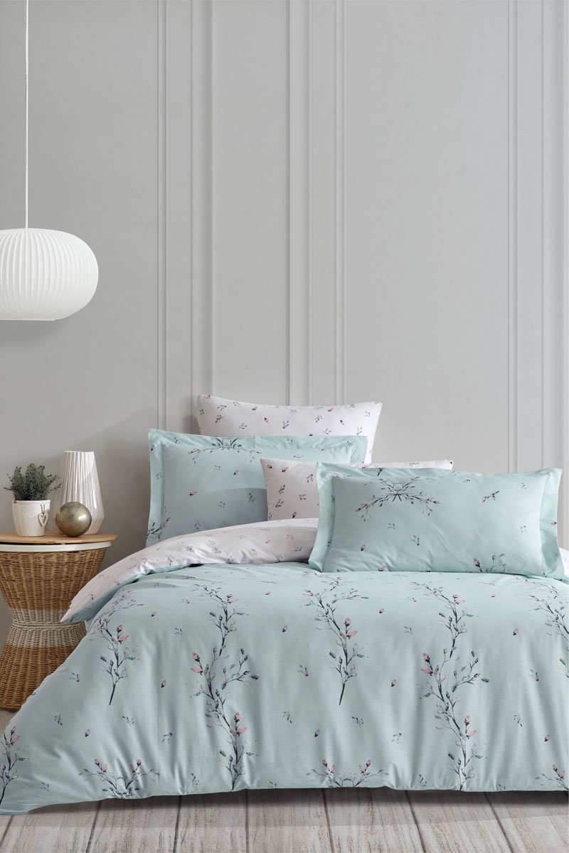 Juego de nórdico de algodón reforzado 145 hilos/cm² Mayda - Verde y blanco