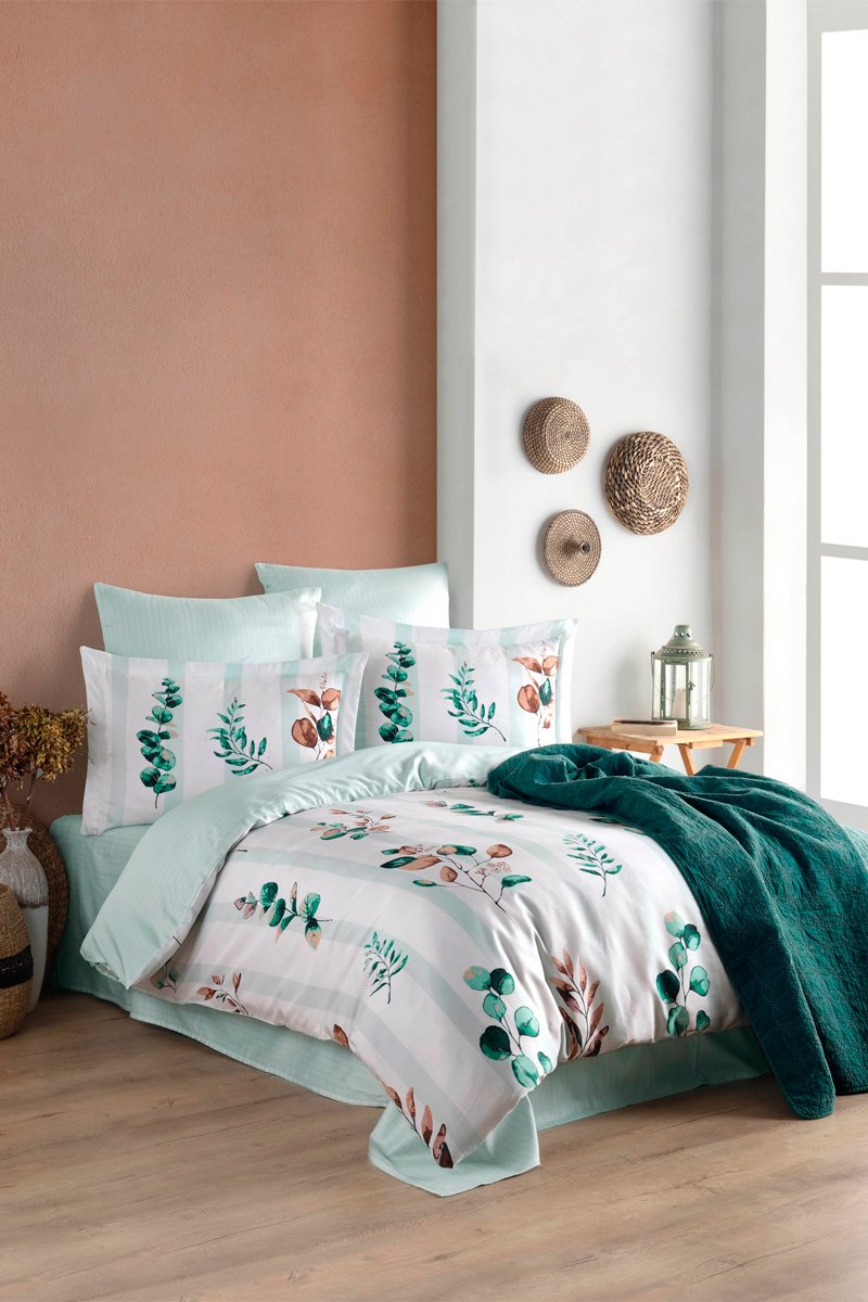 Juego de nórdico de satén de algodón 210 hilos/cm² Vicanze - Blanco y verde